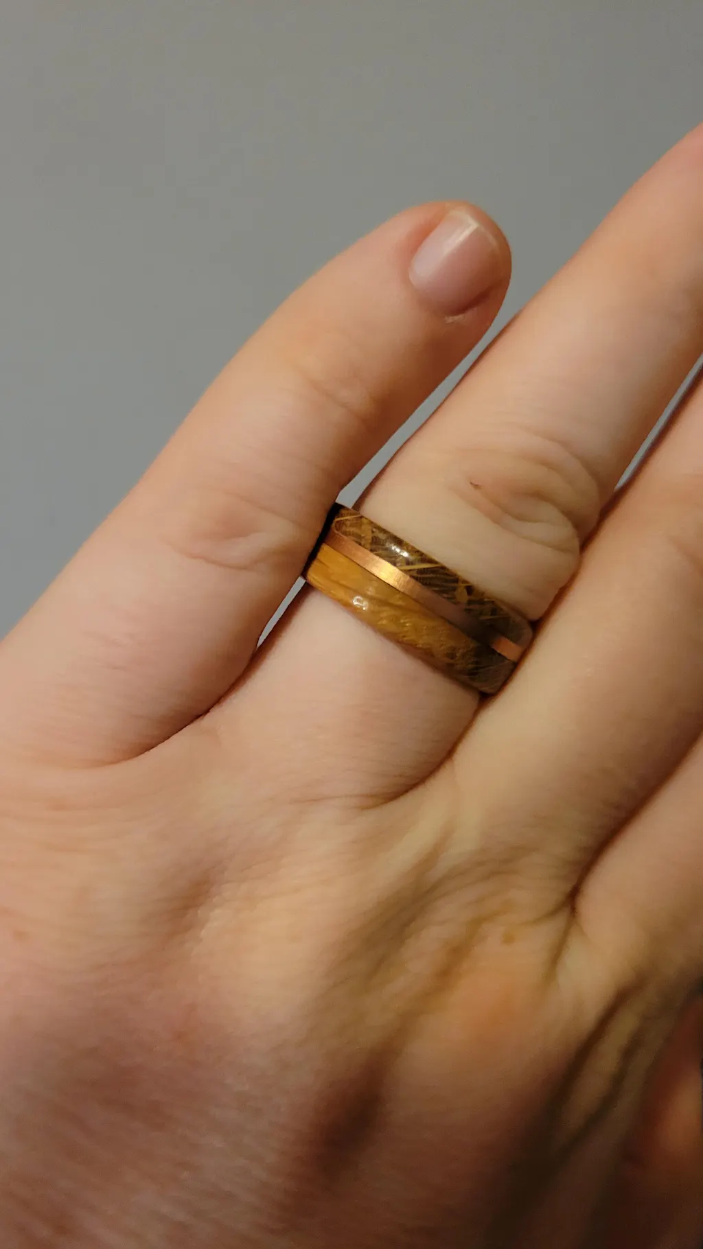 I got this ring for my husband to celebrate our 7th Anniversary. He loves it. He was very excited to have an updated ring and another option to wear for special occasions. It is a gorgeous ring. Great quality. The detail of the wood and copper is impeccable.